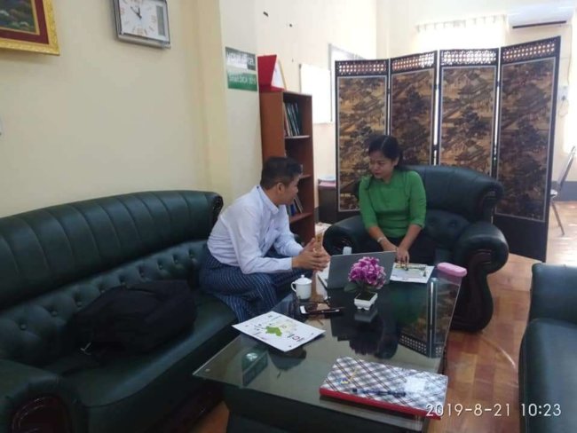 Daw May Myo Zaw, Director for Head Office of Kayah State, Directorate of Investment and Company Administration received U Ngwe Htun, Director, Genius Shan Highlands Coffee, Aung Nay Lin Htun Co.,Ltd on 21st August, 2019 at Head Office of Kayah State and cordially discussed about the establishment of coffee factory in Industrial Zone (2).